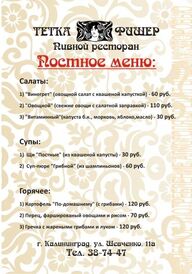Для тех, кто соблюдает Великий пост, в ресторане «Тетка Фишер» разработали специальное меню.