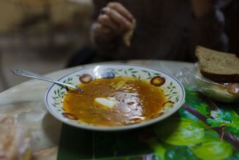 На подоконнике кафе «Домашняя кухня» (оно находится напротив бара «Кнайпхоф», в подвале Калининградского университета экономики) стоят самовары и чайный сервиз, еще недавно лежала связка бубликов — видимо, для того, чтобы ни у кого не было сомнений: здесь все как дома. Внутри — как в обычной, но очень чистой столовой: скатерти на столах, блестящий кафельный пол. Тут специально всю еду дают в таких тарелках, как будто для гостей специально были разобраны и перемешаны между собой несколько сервизов: нам с фотографом достаются разные суповые тарелки. В них — рассольник и свекольник, почти как дома.