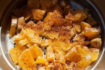— Берем кочан цветной капусты и варим его в соленой воде до состояния полуготовности. Потом разбираем кочан на соцветия и выкладываем в противень, смазанный сливочным маслом и посыпанный панировочными сухарями. Взбиваем два куриных яйца с двумя ложками сметаны и заливаем этой заправкой нашу капусту, сверху трем сыр, а потом ставим форму в разогретую духовку и запекаем при 200 градусов минут 15, до тех пор, пока не появится румяная корочка. Это очень простое и быстрое блюдо, в самый раз на компанию, жалею только, что не приготовила больше — вот этот лоток съели моментально.