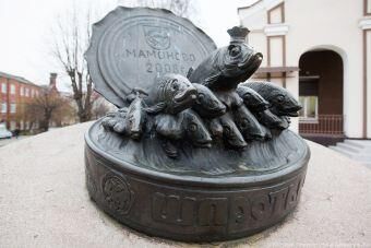 Мамоново — пожалуй, единственный областной город, у которого есть свой гастрономический символ. На главной площади напротив местного дома культуры установлена огромная банка со шпротами — памятник мамоновскому рыбоконсервному комбинату. Из бронзовой консервной банки рвутся на волю (или просятся в рот) собственно сами шпроты, во главе жирного косяка главная балтийская копченая килька — с выпученными глазами и с золотой короной.