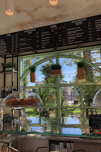 Кофейня «Кофе Тур» находится на ул. Профессора Баранова и работает ежедневно с 9 до 22 часов. Эспрессо здесь стоит 90 рублей, американо — 100, кофе по-деревенски — 130, флет уайт и латте — 180, раф — 220. Цена авторского кофе — 260-340 рублей. К примеру, можно попробовать арахисовый, мятный или сырный латте, а также кедровый, кавказский или кокосовый раф. Какао — от 130 рублей, горячий бельгийский шоколад — от 210.