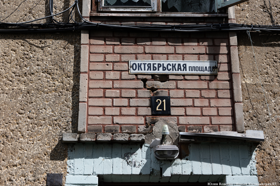С улицы Павлика Морозова сворачиваем на крохотную улицу Ольховую, которая раньше называлась Эрленвег (то есть, по сути, тоже Ольховая — прим. «Нового Калининграда»), и выходим на Октябрьскую площадь (бывшую Фихте-плац) — может быть, самую необычную в Калининграде.