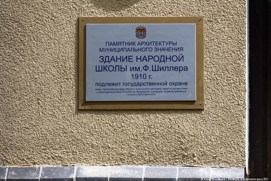 Рядом, на Новикова, 3-5 — бывшая народная школа для девочек им. Шиллера, построенная в 1900–1910 годах. Это массивное, но вместе с тем не лишенное изящества здание с высокой и сложной крышей и замысловатым декором на фасаде. В советское время оно тоже использовалось в качестве учебного заведения. Сначала там было ремесленное училище № 1 при заводе № 820 (ПСЗ «Янтарь»), потом — профессионально-техническое училище (ПТУ), профессиональный лицей. Сейчас в этом памятнике архитектуры размещается Прибалтийский судостроительный техникум.