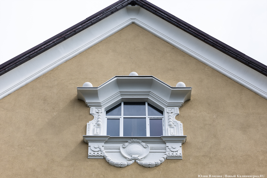 Обогнув храм, выходим на улицу Маршала Новикова, которая до 1985 года называлась Кровельной, а еще раньше — Шифердеккер-штрассе, в честь уже знакомых нам пивоваров. Улица эта совсем небольшая, но достопримечательностей на ней хватает. На Новикова, 1, нас встречает хорошо сохранившееся одноэтажное, построенное в стиле сельского дома здание с мансардой и выступающим на фасаде фонарем, завершенным балконом.