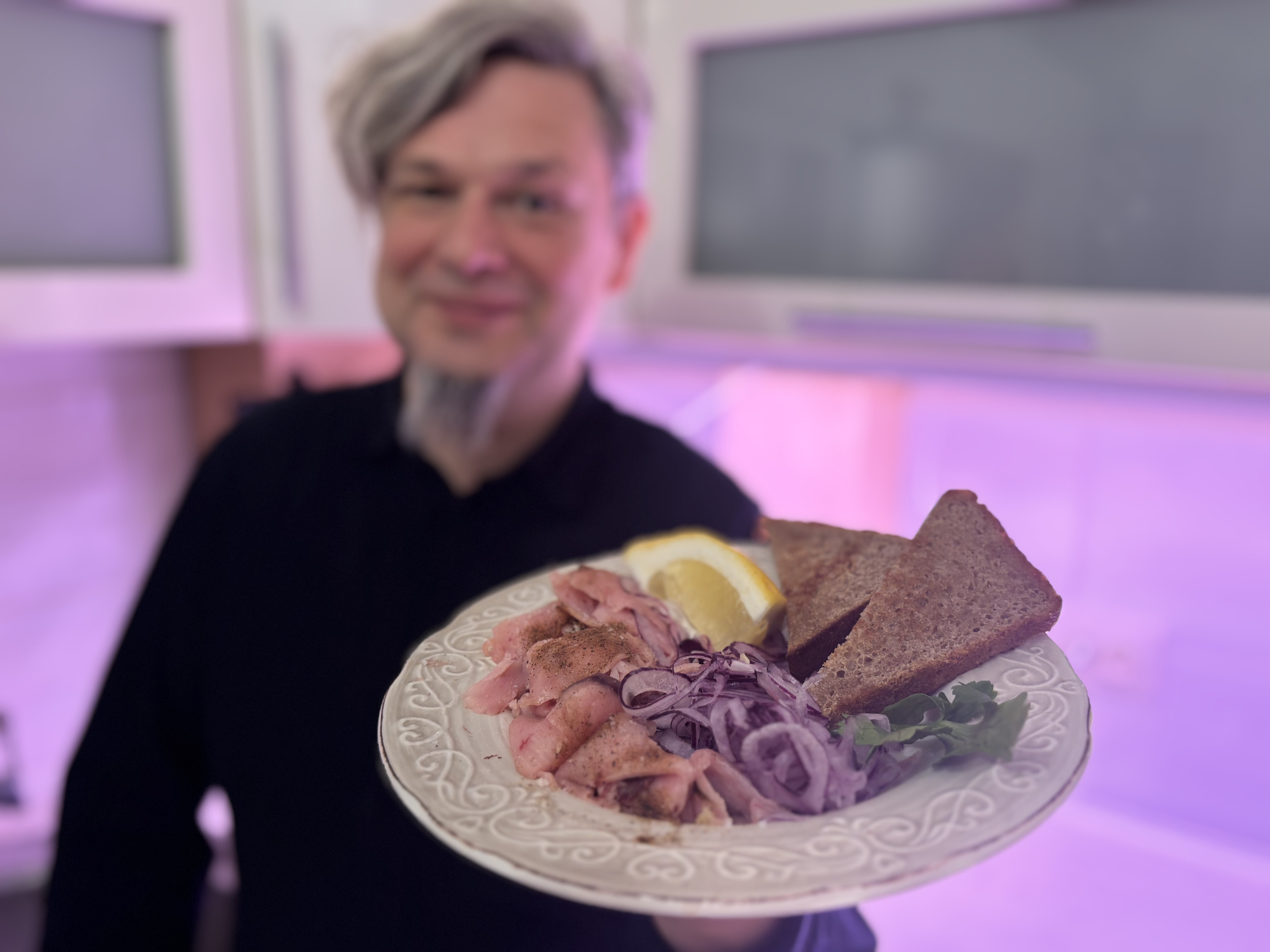 Сегодня мы представляем домашний рецепт строганины из пеламиды, которая уже много лет является важным блюдом для семьи журналистов Кирилла Синьковского и Ольги Саяпиной. Они работают в региональной журналистике около 30 лет, вместе — 26-й год. Кирилл родом из Калининграда (а точнее, Балтийского района), Ольга живет в нашем городе с младенчества — сюда на коксогазовый завод распределили её маму после московского вуза. Оба окончили истфак Калининградского государственного университета (там и познакомились), работали в разных СМИ — от «Калининградской правды» и «Каскада» до «Страны Калининград». Последние полтора года блестящие публикации Кирилла Синьковского и Ольги Саяпиной можно читать на «Новом Калининграде». Кирилл также окончил в свое время «мореходку» по специальности «технология рыбных продуктов», поэтому отлично знает, как делать строганину из пеламиды в домашних условиях.