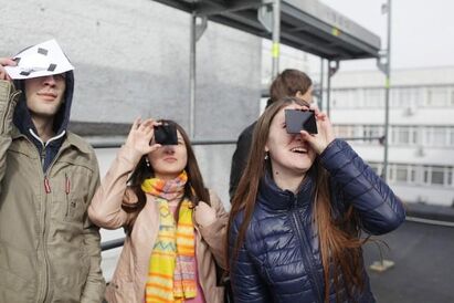 В пятницу, 20 марта, жители европейской части России, в том числе и Калининградской области, наблюдали солнечное затмение — астрономическое явление, во время которого диск Луны закрывает собой Солнце от наблюдателей на Земле. В Калининграде солнечный диск оказался закрыт спутником Земли от наблюдателей почти на три четверти. Активная фаза явления началась около 10:50 по местному времени, а максимума затмение достигло к полудню. Корреспонденты «Афиши Нового Калининграда.Ru» для наблюдения за явлением отправились в БФУ им. И. Канта, где студенты установили на крыше одного из корпусов телескоп с узкополосным h-альфа фильтром.