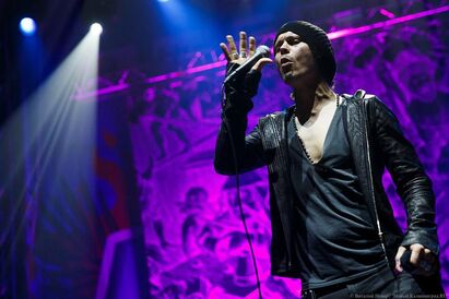 А затем был «HIM». Настоящий «HIM» с настоящим Вилле Вало и настоящим светом, звуком и хитами, которые были на пике популярности 14 лет назад. Около сцены толпились люди, которые не верили своему счастью. «Если бы мне