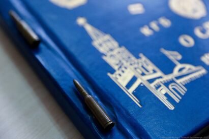 Вот, обратите внимание: как правило, первый разворот должен был быть посвящен городу, в котором ты служил, а последний — тому городу, из которого ты приехал. Тут у нас Москва, а здесь Калининград. Вот здесь нужно вклеить две карточки: до призыва и после присяги. А дальше у кого уже на что фантазии хватало. Почти все фотографии для этого альбома я сделал сам. В части фотоаппарат был у меня, и была ещё одна ротная камера, которую разрешали брать в увольнительную. Но, как видно, все всё равно ухитрялись фотографировать в части, да и печатали фотографии в ней же — втихаря, ночью. А вот я в столовой: мне время от времени очень нравилось так рассекать по столовой, с подносом подойти к начальнику штаба батальона и поставить перед ним тарелку. Да, и обязательно чтобы тряпочка на руке висела — это я так под официанта косил. Вот уголки для альбома я сделал сам: это нужно было ещё ухитриться где-то стащить рулон фольги, например вот такой, из которой делали кефирные крышечки. А это я на рабочем месте, за персональным компьютером. Это наш платц, это штаб, это мы в казарме, это господа офицеры на сорокалетие части. А этом мы пошли в увольнение и сфотографировались у памятника Дзержинскому. А это мы в патруле, с оружием.