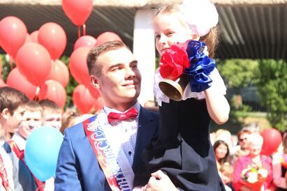 Звучит последний звонок — по традиции его даёт девочка-первоклассница, которую держит на руках красивых рослый выпускник. В небо выпускают воздушные шарики, в центр двора выходит одиннадцатиклассница и поет песню, под которую школьники танцуют уже с учителями и родителями. «Так хотели Антона Андреевича на танец пригласить, но никак…» — с печалью смотрит на костыли врио губернатора одна из мам. После все фотографируются с Алихановым и отправляются на классный час.