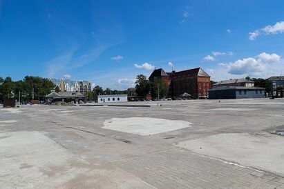 Через два дня забор вокруг площадки сняли и открыли её для калининградцев. Сейчас там нет ничего, но и забора тоже нет.