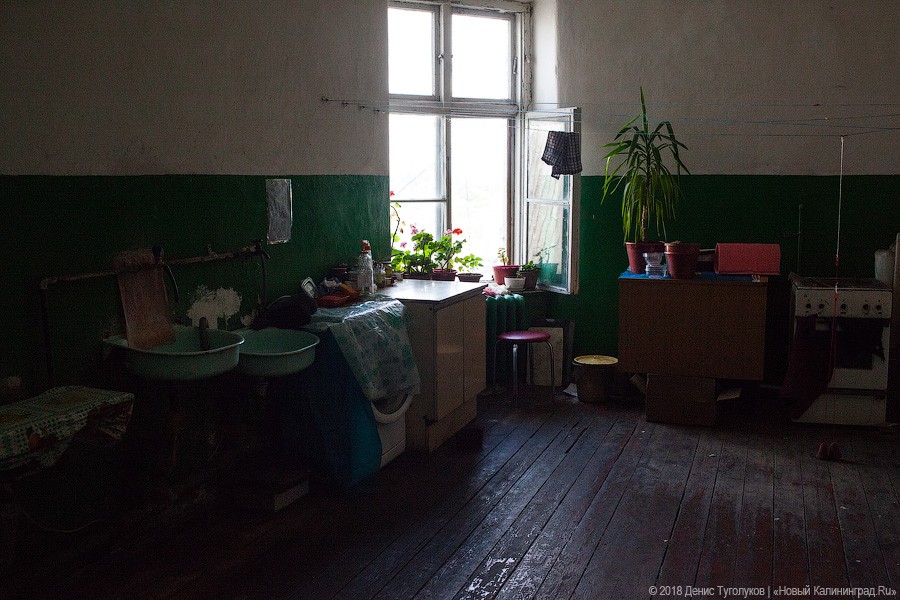 Остальным аварийщикам чиновники предложили переселиться на неопределенное количество лет в старое общежитие в Светлом переулке. Сейчас это здание, относящееся к маневренному фонду, хоть и имеет официальный статус многоквартирного дома, но суть не изменилась — крохотные комнаты, длинные коридоры, общие туалет и кухня на этаж, полное отсутствие ремонта.
