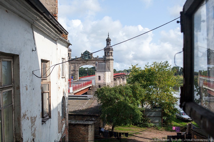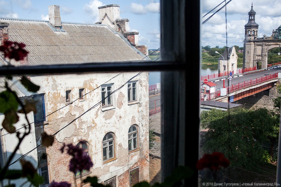 В Советске у моста Королевы Луизы, соединяющего литовский и российский берега реки Неман, стоит уникальный дом. С трех сторон он окружен территорией пограничного пункта пропуска, а с четвертой его подпирает берег реки, за которой начинается Литва. Жизнь обитателей дома сильно отличается от жизни других горожан: они вынуждены всегда носить при себе паспорт и периодически обходиться без автомобилей, крупногабаритных покупок и даже без помощи экстренных служб. За последние годы здание сильно обветшало, и теперь некоторые жильцы опасаются за свои жизни, но переселять их власти не торопятся. «Новый Калининград» рассказывает о пограничной (во многих отношениях) жизни дома на улице Базарной в Советске.
