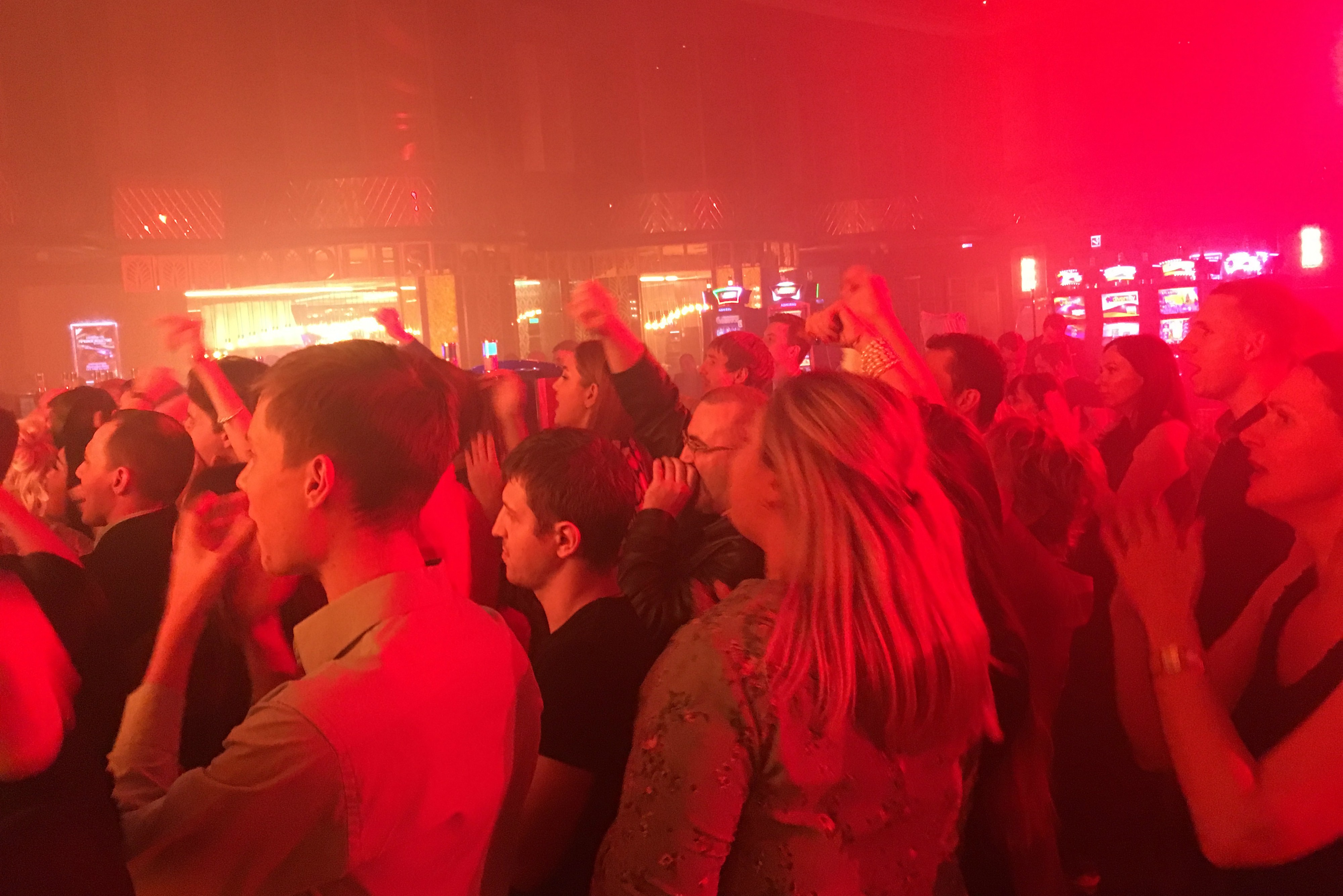 После того, как все переоделись, сбегали в туалет, рассовали по карманам и сумочкам мобильники, нас строем ведут в главный зал казино. Здесь царит полумрак и работают