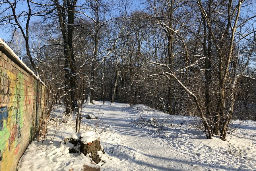 Сейчас на одной стороне улицы Шота Руставели располагаются жилые дома, на другой ؙ— кирпичный забор, разрисованный простенькими граффити. За забором — то, что с некоторой натяжкой можно назвать «зелёной территорией»: деревья, разбитая тропинка, овраг с ручьём и хлипкий мостик через него, выходящий на улицу Носова. Земля принадлежит зоопарку, хоть и не сообщается с ним напрямую. В довоенное время этот гектар тоже был территорией зоосада. Здесь находился этнографический музей под открытым небом, где были представлены дома жителей различных частей Восточной Пруссии. В