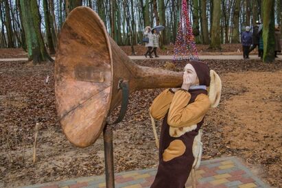 Народ (а к открытию в итоге собрались сотни человек, и это были не только подневольные бюджетники) и вправду выглядел совершенно счастливым. Но не потому, что его покормили «блинами с лопаты», причина в другом. «Сенситивный» парк Гурьевска — редчайший пример... любви к своему делу (не бейте автора этих строк те, кто увидит строительный брак). Там просто интересно. Из него не хочется уходить, а хочется дергать за дергалки, кричать в кричалки, трогать трогалки (сенситивный — значит, про органы чувств). Как выяснилось, на это способны и взрослые: актер в костюме Деда Мороза, солидная средних лет дама со своим спутником, бабушки и их мужья. Возле каждой из бесчисленных установок для воспроизведения эха, отражателей, маятников, переговорных устройств, дисков, емкостей и других непонятных штуковин, которыми усыпан парк, было просто не протолкнуться.
