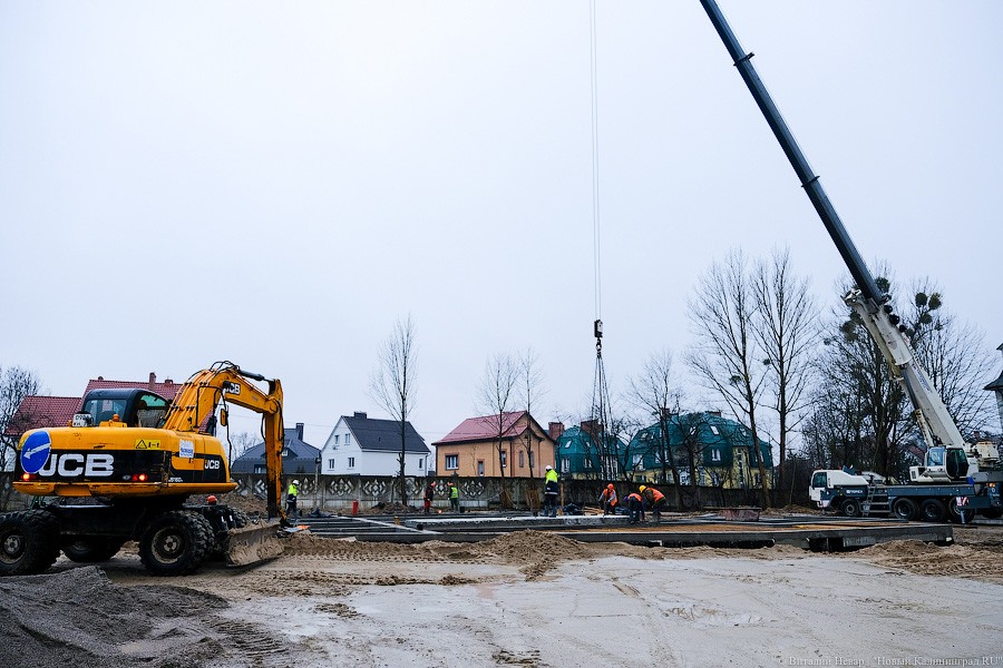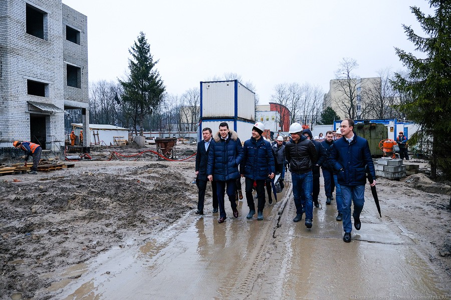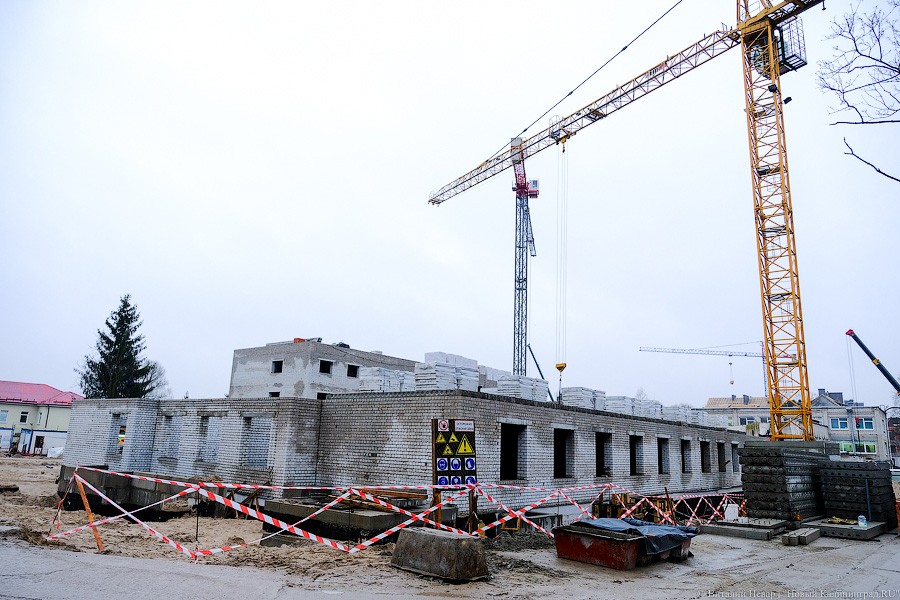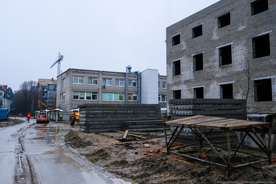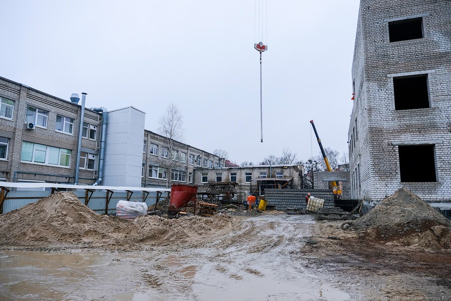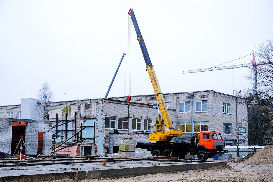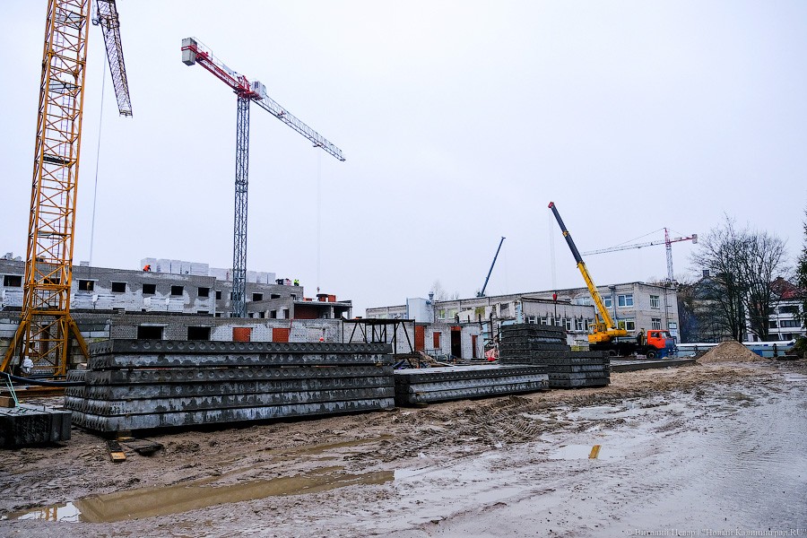 Почти миллиардный контракт на строительство в апреле прошлого года выиграла компания «Янтарьсервисбалтик» из Светлогорска, она же занималась строительством школы на ул. Аксакова. Но после того, как генподрядчик начал отставать от графика, региональные власти настоятельно рекомендовали позвать на помощь субподрядчика и на объекте появился «Чистоград» экс-депутата из Янтарного Виталия Козлова. Его компании, в частности, занимались достройкой калининградских очистных и ремонтом набережной Нижнего озера.