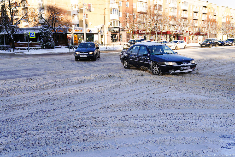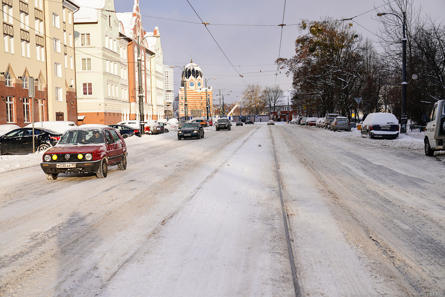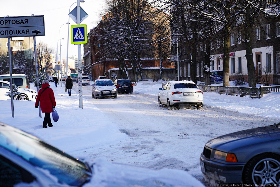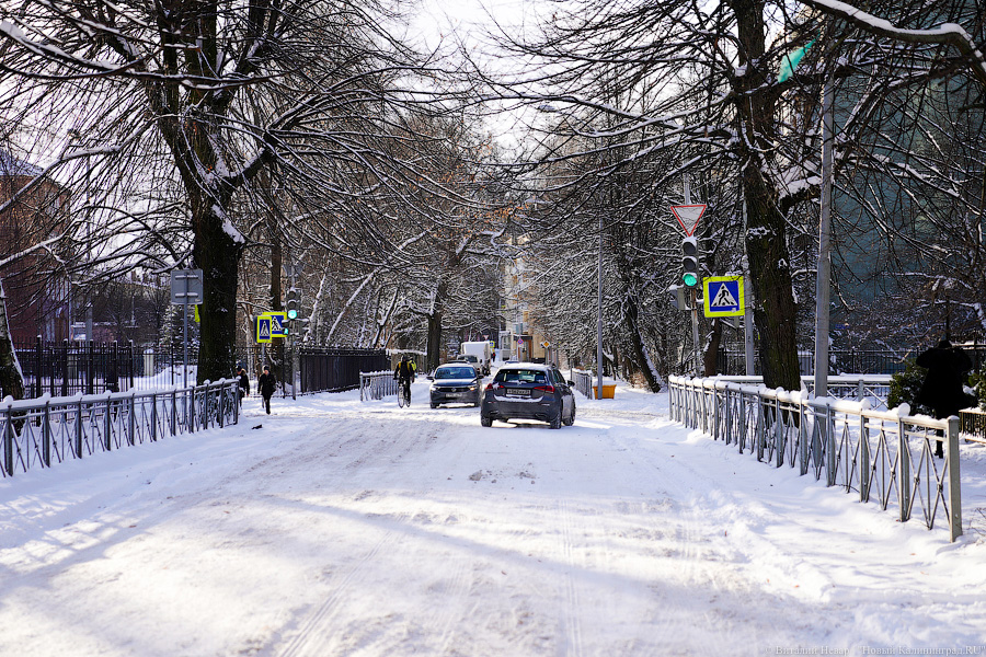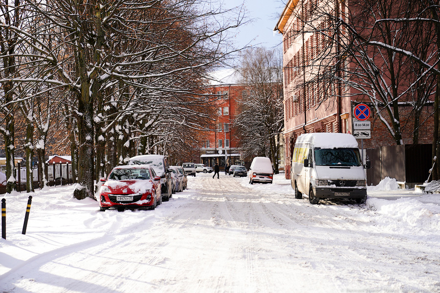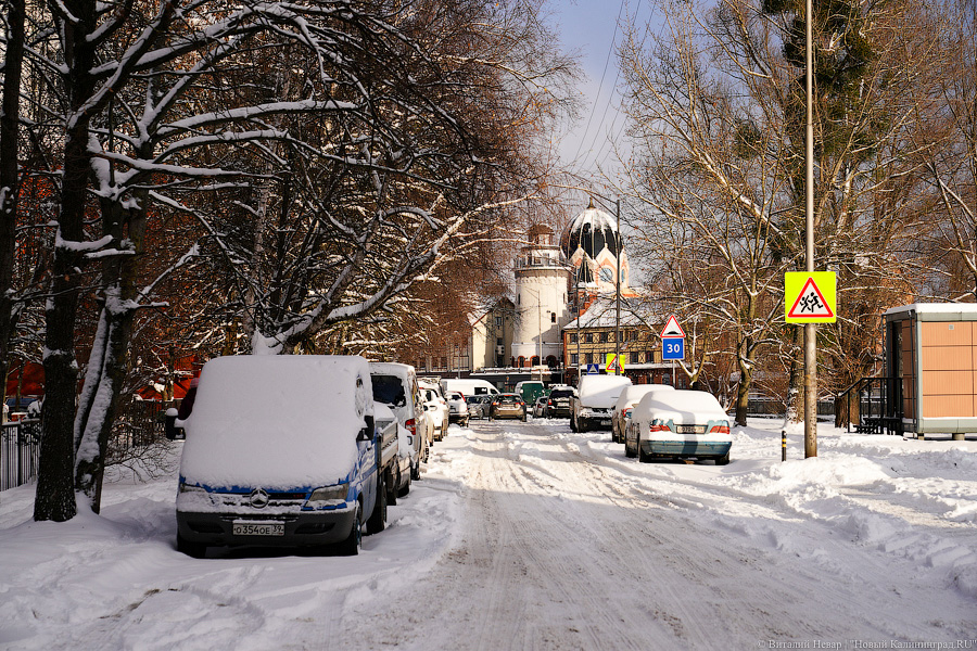 В Калининграде за минувшие вечер и ночь выпало большое количество снега. Городские улицы покрылись сугробами.