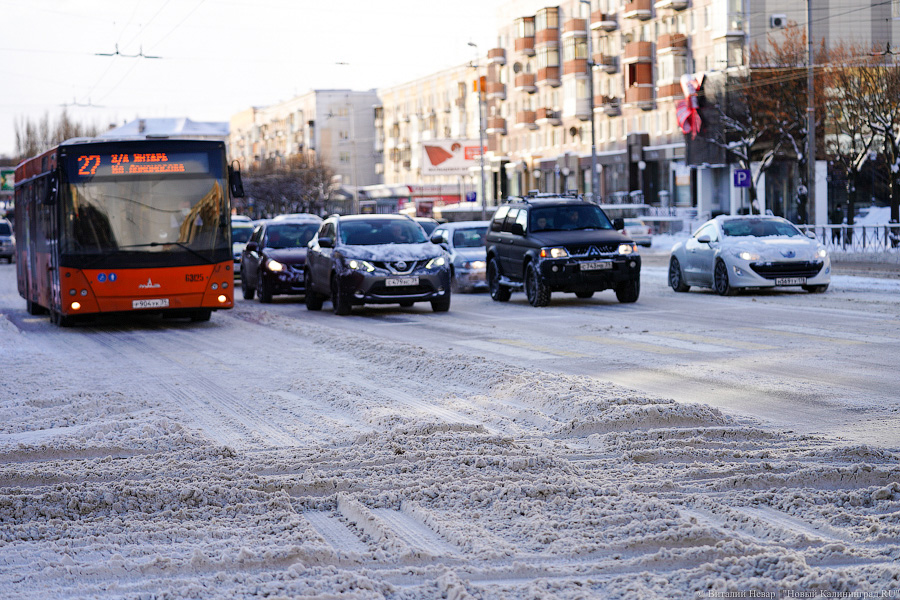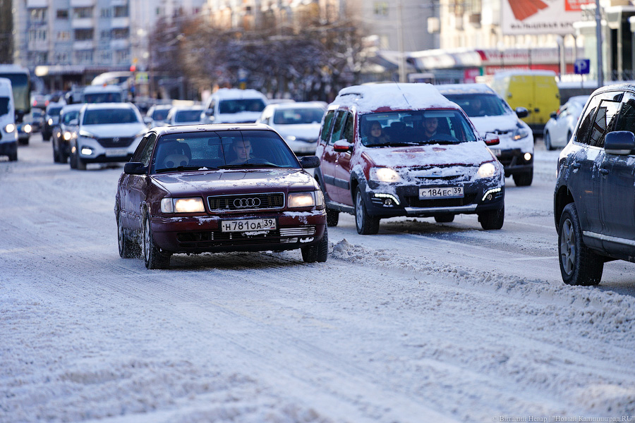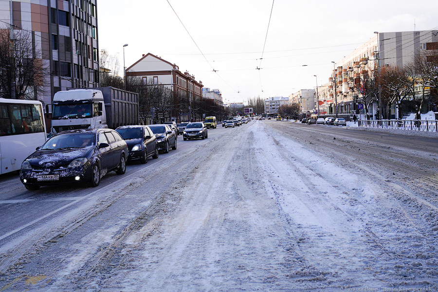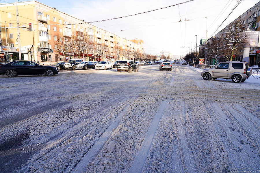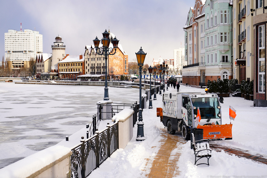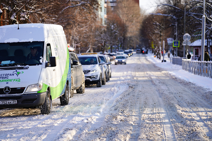 В Калининграде за минувшие вечер и ночь выпало большое количество снега. Городские улицы покрылись сугробами.