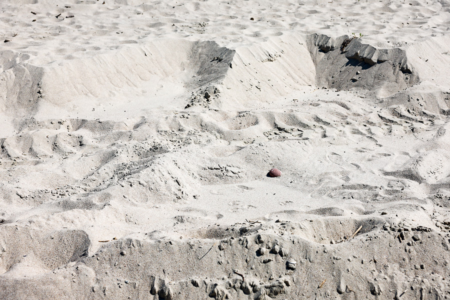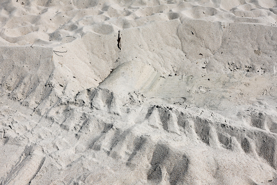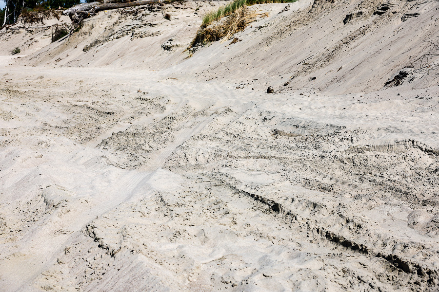Посмотреть действительно есть на что: на протяжении примерно километра от форта пляж взрыт колесами тяжелой техники (такие колеи даже пресловутым «джиперам» продавить не под силу). На береговой линии есть целые площадки, на которых ясно видно: верхний слой песка сгребали ковшами.