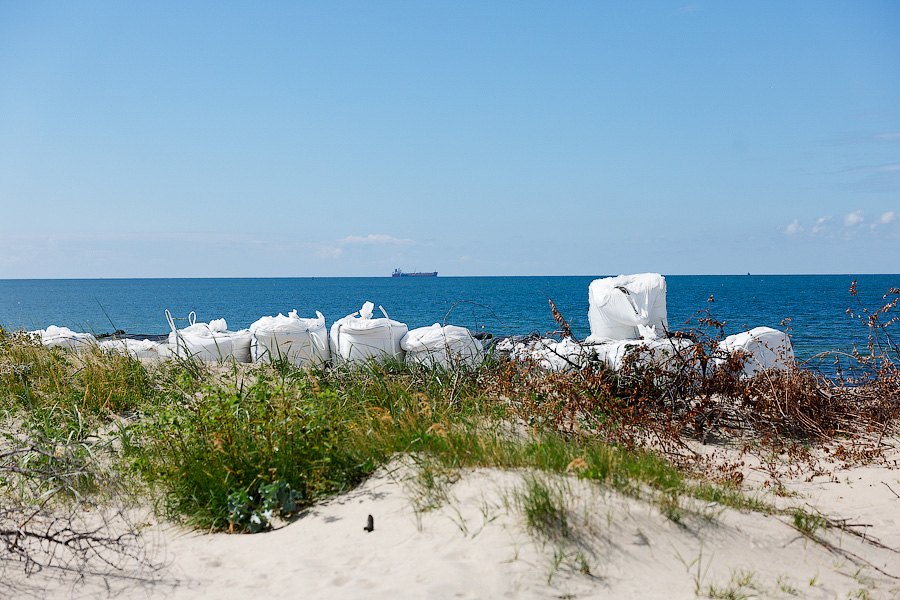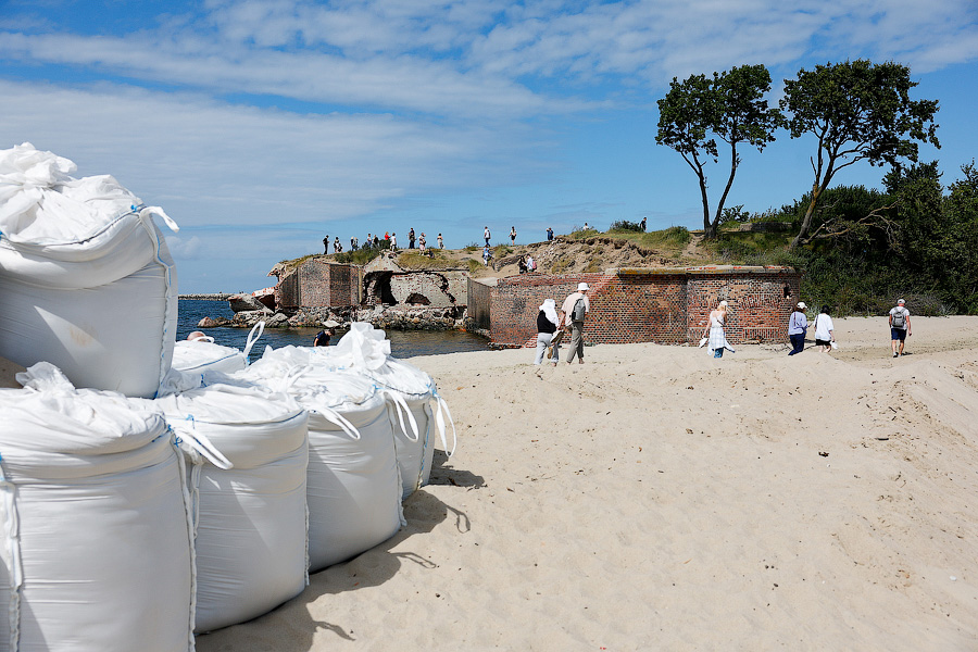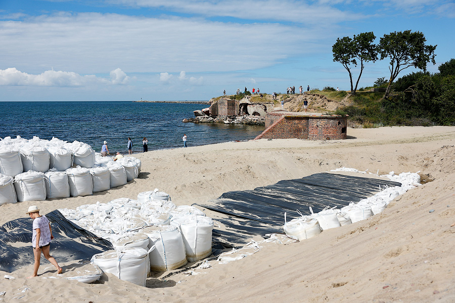 Возле Западного форта на Балтийской косе идут работы по восстановлению авандюны. Эти работы подпортили лето отдыхающим, они ведутся в непосредственной близости от нового пляжа. Но больше всего вопросов к «берегозащите» на косе возникло у экологов и местных жителей. Чтобы укрепить берег в районе форта, рабочие сгребают песок прямо с пляжа, дополнительно разбивая его тяжелой техникой. Потом песок ссыпают в мешки и составляют из них защитную стенку. Экологи считают такое укрепление недолговечным и опасным для природы. Власти говорят, что это противоаварийные работы и они необходимы, а «нормальное» берегоукрепление на косе тоже будет. Когда-нибудь, когда появятся деньги. На самом постапокалиптическом пляже области побывали корреспонденты «Нового Калининграда».