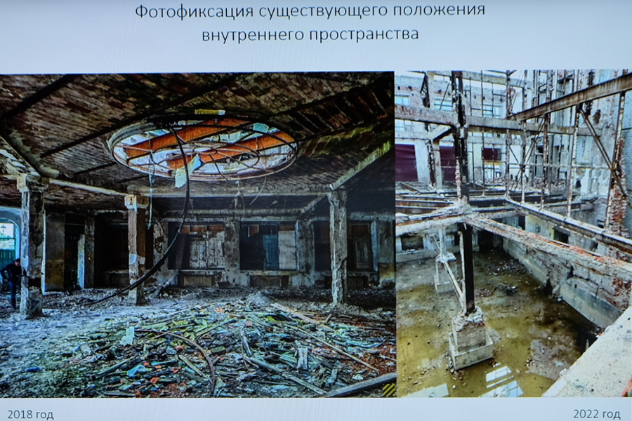 Компания «СтройТех» выкупила здание в августе 2021 года за 52 млн рублей, пообещав приспособить его к современному использованию в течение трех лет. Однако во время демонтажа внутренних конструкций и изучения архивных материалов у предпринимателей возникли вопросы. С ними на совет пришел представитель собственника, главный инженер «Архитектурной мастерской Вячеслава Ковальчука» Михаил Минько.