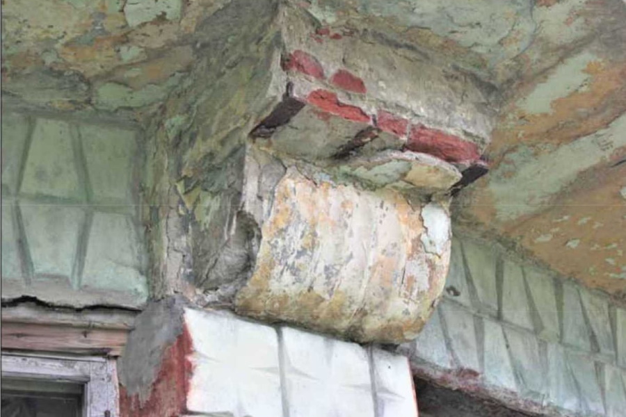 «В настоящее время планировка практически утрачена, там обрушились перекрытия полностью», — сообщил он, демонстрируя снимки. Минько напомнил, что в 2018 году кирпичные перекрытия ещё были, но к 2022 году они обвалились вместе с частью каркаса здания.