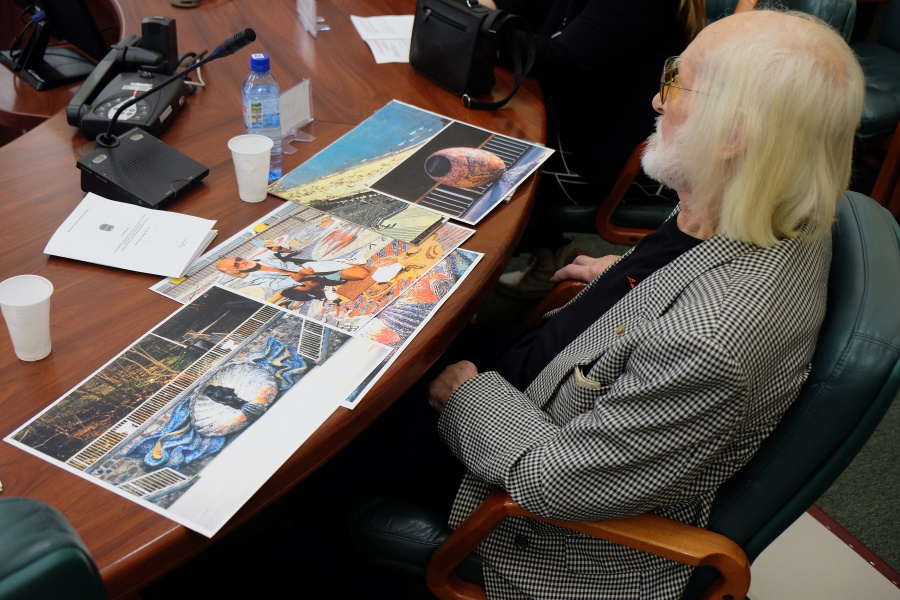 Успокоив художницу, Маслов продолжил: «Переносить-копировать? Да-нет? Нет. Мы это услышали, и нам уже хорошо. Теперь, мне кажется, стоит сосредоточиться на вопросе, есть ли все-таки техническая возможность усиления основы. Реставрацию тоже нужно делать на месте. можно найти технические средства. Будем дальше работать с заказчиком и проектировщиком по поводу варианта... — тут Маслов почему-то снова заговорил о снятии мозаики. — Лазерными дисками или каким-то еще образом срезать, разобрать. Не зубилом же выбивать кусочки смальты. Извините за этот ужасный образ. Будем максимально сохранять все авторское в работе».