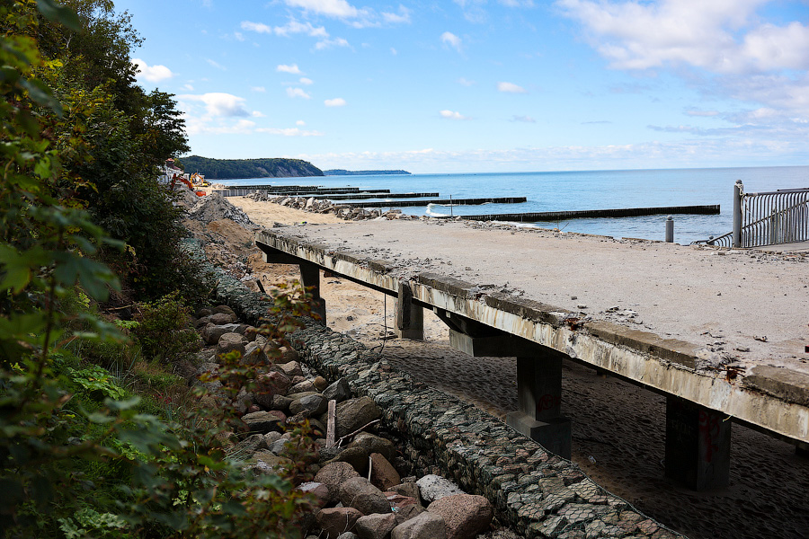 Маслов передал слово директору «Балтберегозащиты» Сергею Черкасову. Тот объяснил, что в проекте реконструкции, подготовленном ранее, не предполагался демонтаж памятника. Более того, в нем был предусмотрен раздел по обеспечению сохранности солнечных часов. Однако шторм 2019 года, который Черкасов назвал «штормом однопроцентной обеспеченности, бывающим раз в сто лет», показал, что конструкции променада больше не способны выдерживать удары стихии.