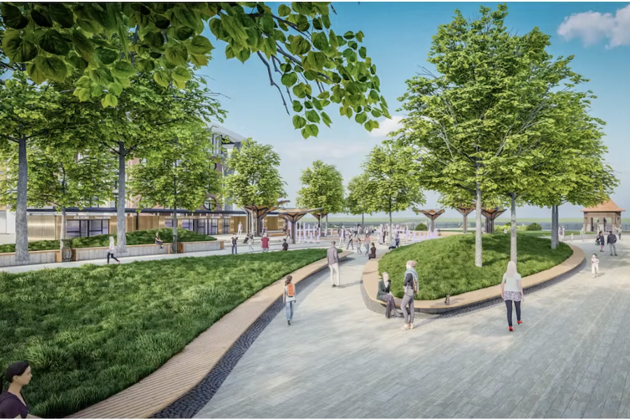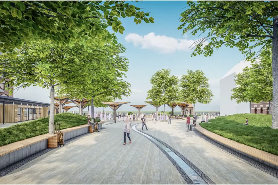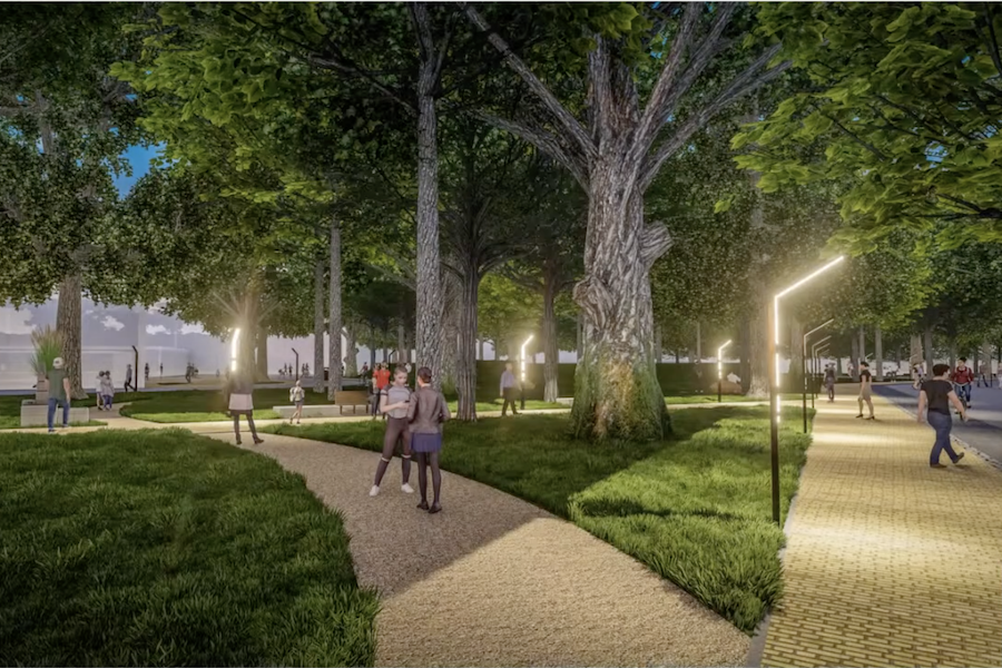 Вдоль променада хотят обустроить «зеленый каркас» за счет клумб и злаковых растений, которые «будут интегрированы в структуру променада». «Высаживать высокорослые деревья и хвойные не получается, практика показывает, что они не приживаются из-за нашей агрессивной городской среды», — отметил соавтор концепции.