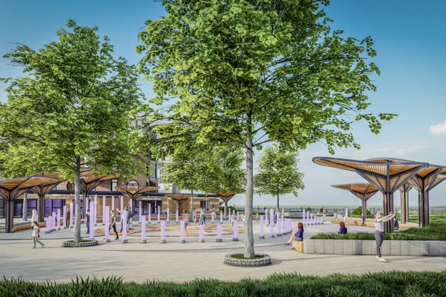 По периметру аллеи хотят установить скамейки из деревянных ламелей, имитирующие дюны. Также на аллее должны появиться уже знакомые «грибовидные» перголы.