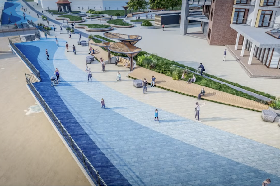 Замглавы администрации Павел Боровиков добавил, что презентация не отражает истинного цветового решения променада и на самом деле оно будет куда более «сдержанным». «Это на рендере оно синее-синее, а плитка, которую выбрали, она все-таки более человеческий имеет вид, там сдержанные, глубокие тона. На визуализации достаточно тяжело отразить тот пигмент, который получается», — успокоил он комментаторов.