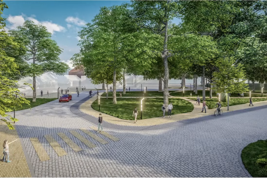 На слайдах презентации мощение выглядит пестроватым, так что к нему у местных жителей, смотревших презентацию, немедленно возникли вопросы. Однако авторы настаивают на уместности решения.