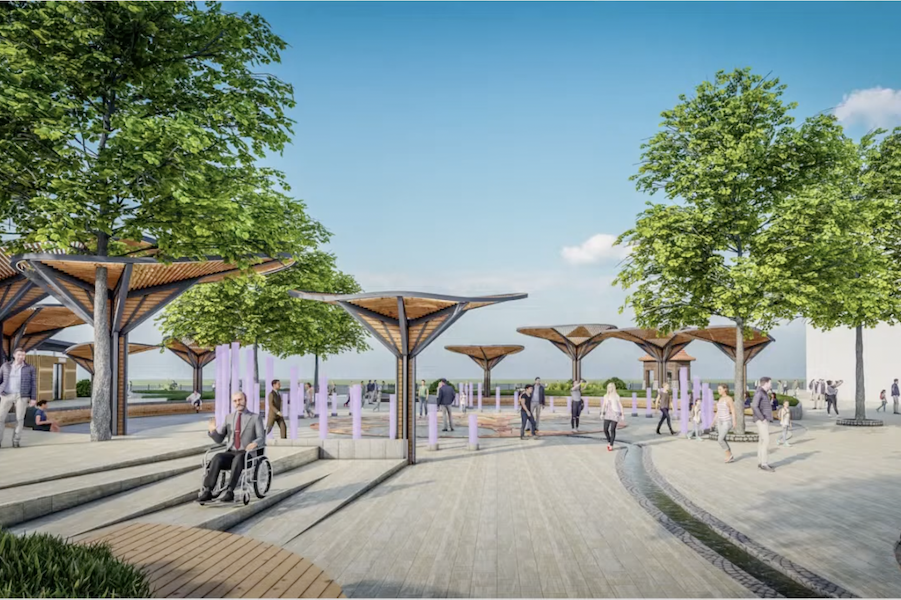 «Предусмотрена безбарьерная среда в виде пандуса, он же „два в одном“, это лестница. Вся территория будет опущена на отметку −40 см., в центральной части создается некая атмосфера углубленности, такого амфитеатра. И мы предполагаем, что в этой нише будет возможность укрыться от ветра», — добавил Крыщенко.
