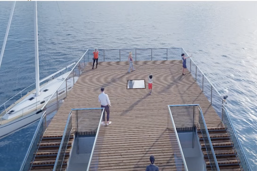 Правда авторы оговариваются, что смотровое окно, тем более с эффектом дополненной реальности — только один из вариантов обустройства нового покрытия пирса, потому что многое будет зависеть от того, удастся ли подобрать доступные, а также удобные в уходе и безопасные материалы.