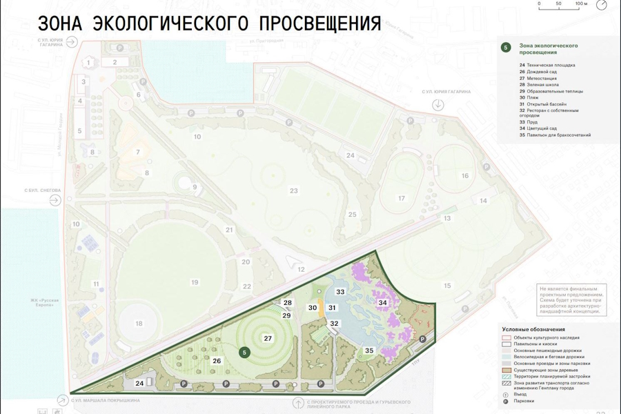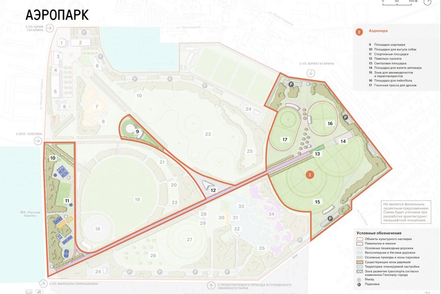 «Мы сейчас на стадии преконцепта, перед нами стояла задача понять характеристики будущей территории. Кто ее целевая аудитория, кто будет сюда ходить, чем они будут заниматься, какие масштабы этого проекта, какие у него этапы, какие объекты там должны располагаться, каких они площадей. Пока мы даже не приступали и особо не осмысляли вопросы, связанные с архитектурой и ландшафтным обликом парка. Все картинки необходимы в первую очередь чтобы передать функцию, которую мы предлагаем расположить на территории, и атмосферу, которая там должна быть, масштаб этой функции, но облик этого объекта финальный будет определяться уже архитекторами на следующей стадии», — пояснила она.