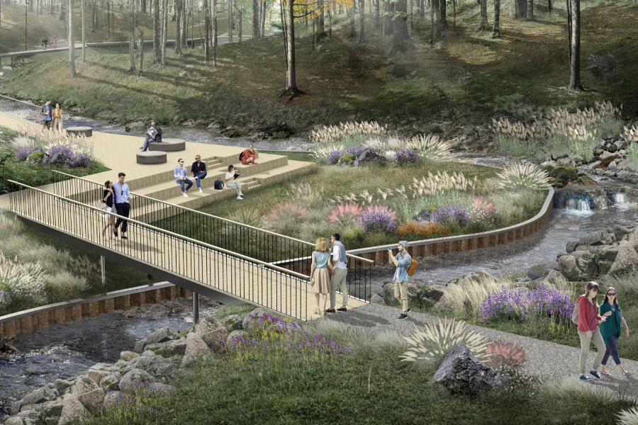 В Центральном парке хотят оборудовать пешеходный променад с велодорожками протяженностью 2,5 км. Как рассказал главный архитектор компании «Другая архитектура» Владимир Панифедов, это будет кольцевой маршрут, проходящий мимо всех функциональных зон парка: «Маршрут объединяет всю территорию парка, разделенную сложным рельефом — ручьями, холмами, обрывами и так далее. Для этого планируется три пешеходных мостовых сооружения».