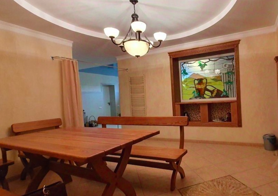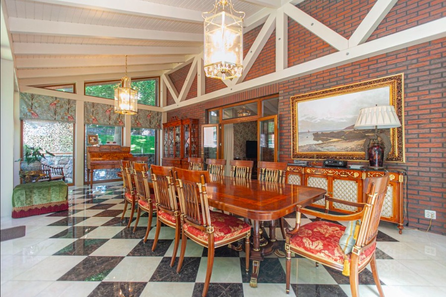 «Дизайнерский ремонт, мебель и предметы декора итальянской фабрики „Francesco Molon“, — говорится в описании дома. — На участке 20 соток великолепно вписаны в ландшафт — особняк, просторная летняя кухня с винным погребом 100 кв. м, беседка, водопад, и гостевой домик с баней на дровах, купелью, с гостиной и спальней 100 кв. м» (стилистика и пунктуация сохранены — прим. «Нового Калининграда).