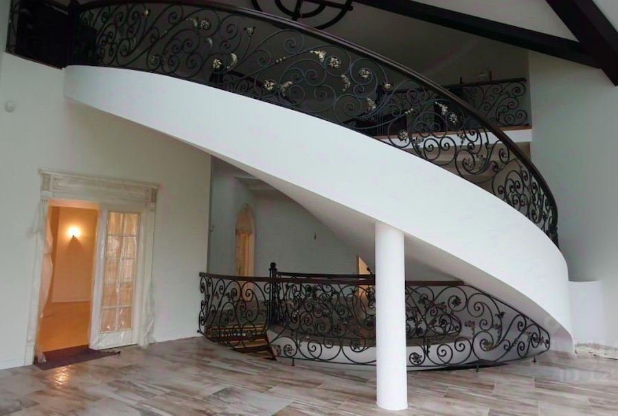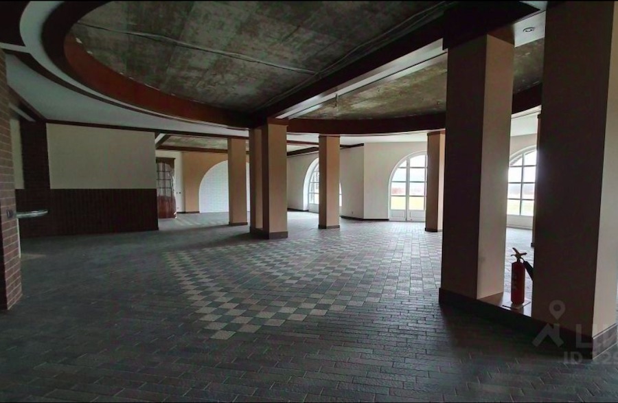 Площадь — 427 кв. метров, построен из монолита и кирпича.