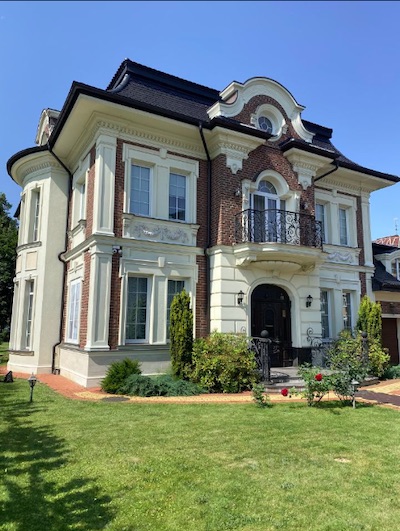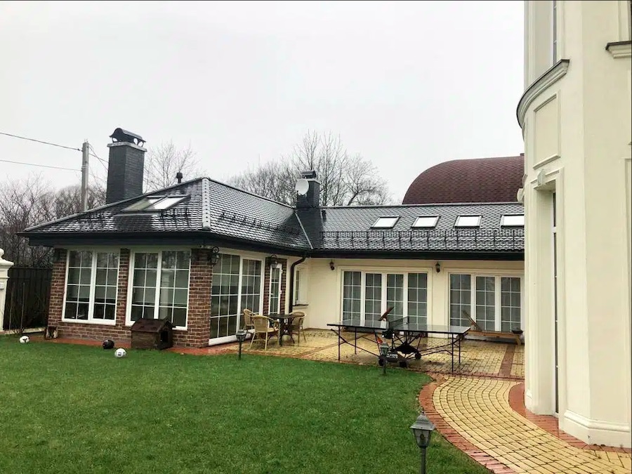 В особняке — стены из керамического блока, кровля — из немецкой керамической черепицы. Среди дополнительных изысков — «отделочный бельгийский кирпич ручной формовки, камин, шикарные двери из массива дерева, дизайнерский ремонт в стиле барокко, великолепная деревянная премиум-мебель от известного производителя». Из дополнительных бонусов — магазин и остановки общественного транспорта в 100-200 м от дома.