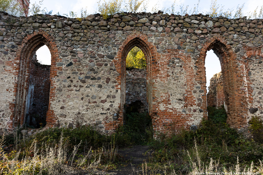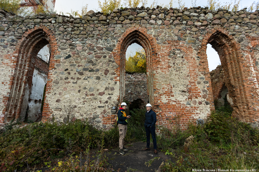 — Тут место немного другое, не совсем подходит для этого. Поясню. Везде, где раньше был замок, до 1945 года было кладбище. В одну сторону на 70 метров и в другую на столько же. Залезать в землю и ворошить все эти кости (а последнего человека тут какие-то 80 лет назад похоронили) очень не хочется. Будет как у Дома искусств. Тревожить и вытаскивать захороненных здесь людей у меня нет никакого желания. Я как арендатор не хочу брать на себя ответственность по вскрытию сотен могил. Людей тут хоронили с XVI века. Это немного не мое. Кроме того, с приходом Альбрехта, создавшего Пруссию, наша земля стала одним из главных мест, где стали развиваться науки, в том числе история. Археология как наука вообще имеет восточно-прусские корни. К XIX веку местными историками было написано большое количество книг по истории древней Пруссии и орденскому периоду. Учитывая, что обрушилась кирха в 1818 году и тогда же были обнаружены подвалы бывшего замка (информация об этом из немецких источников перетекла и в российскую «Википедию»), я уверен, что немецкими историками до консервации было всё изучено вдоль и поперек. Кстати, рядом холм Амцберг, где с конца 13-го века стояла первая часовня, и там же, судя по всему, было прусское городище. Это за пределами кладбища, и там, конечно, было бы логично провести раскопки. Может быть, впоследствии мы и найдем на это деньги. А сегодня главная задача — восстановить здание.
