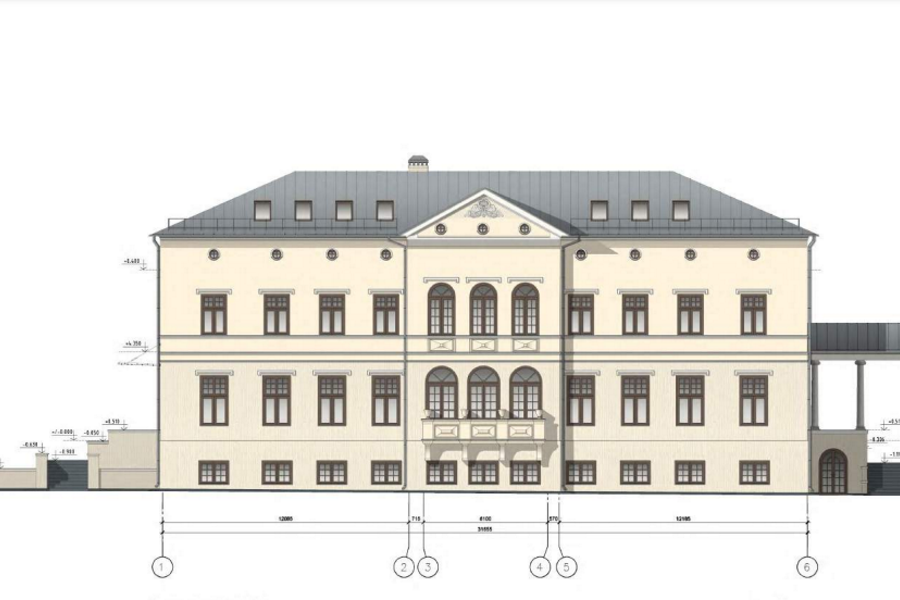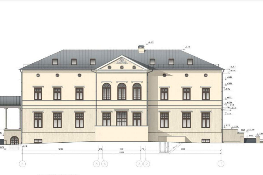 Отталкиваться будущему подрядчику придется от исторических фотоматериалов, поэтому ему предстоит воссоздать все карнизные тяги, демонтировать пристроенные к восточному фасаду двухэтажные пилоны с плоской кровлей из силикатного кирпича и воссоздать на их месте декоративно оформленный ионическим ордером портик с опорами в виде колонн, с капителями и базами, а также историческую трехмаршевую лестницу из натурального камня. Также принято решение выполнить ранее утраченные круглые окна в наружных стенах чердачного пространства.
