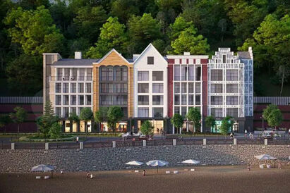 Правда, ни одной картинки будущих апартаментов в объявлении нет. Но есть эскизы будущих домов, которые строятся сейчас на променаде. С деревьями, зеленью и... пляжами. Вероятно, на сайтах объявлений случаются люди, готовые выложить под сотню миллионов за недостроенную пока недвижимость даже без визуализации.