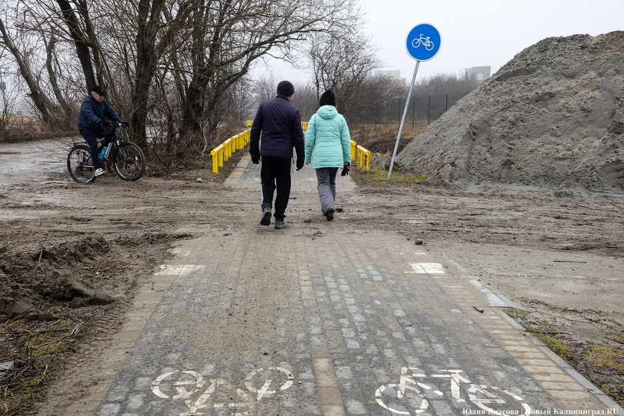 У самого слипа некогда широкая пляжная зона сузилась вдвое, если не втрое, а вода распотрошила кусок авандюны, обнажив ее «скелет» из веток, когда-то переплетенных людьми. Взгляд скользит по береговой линии влево, однако увидеть зеленоградский променад отсюда уже невозможно: его застила громада «нестационарного объекта» — кафе «Монополь», из-за которого едва виднеется кусочек колеса обозрения.