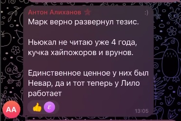 Губернатор Антон Алиханов одобрил слова молодого чиновника: «Ньюкал не читаю уже 4 года, кучка хайпожоров и врунов. Единственное ценное у них был [экс-фотокорреспондент портала Виталий] Невар, да и тот теперь у [директора структуры регионального правительства — Центра поддержки предпринимательства Кирилла] Лило работает».