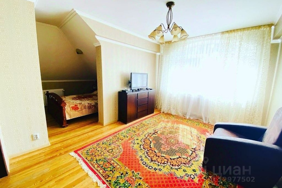 Коттедж площадью 247 кв. метров выставлен на ЦИАН. «Внутренний дизайн оформлен в современном стиле. В каждой комнате — выход на свой балкон», — говорится в объявлении. На первом этаже находятся зал с совмещенной кухней и санузел. На втором этаже — две спальни и ванная комната.