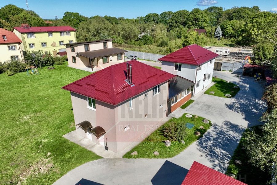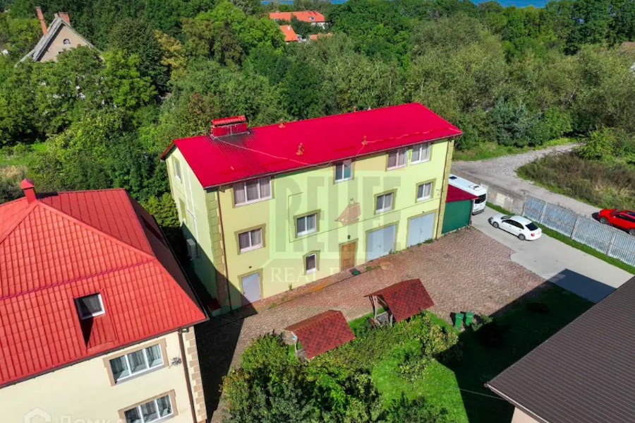«Черепица немецкая. Площадь дома (два этажа) 149 кв. м. Имеется возможность устройства мансардного 3-го этажа (большой чердак) для коммерч. деятельности, — отмечается в объявлениях. — В саду несколько яблонь (в т. ч. антоновка), вишня, слива (три вида+алыча), груши, орех (фундук), грецкий орех, смородина, малина, подсолнух, крыжовник, калина, виноград (изабелла), посажен абрикос. Дороги асфальтированы. В поселке имеются школа, детский сад, клуб, библиотека, музеи, кафе, магазины, кирха (церковь) и масса других туристических объектов».