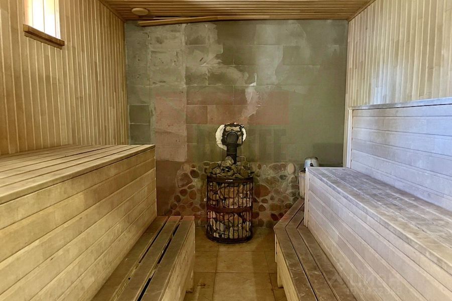 Общая площадь недвижимости — 452 кв. м. В здании есть гараж и подвал, в котором находится баня. Объявление опубликовано на «Домклик».