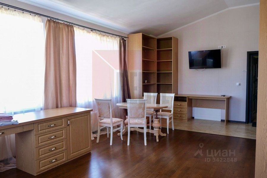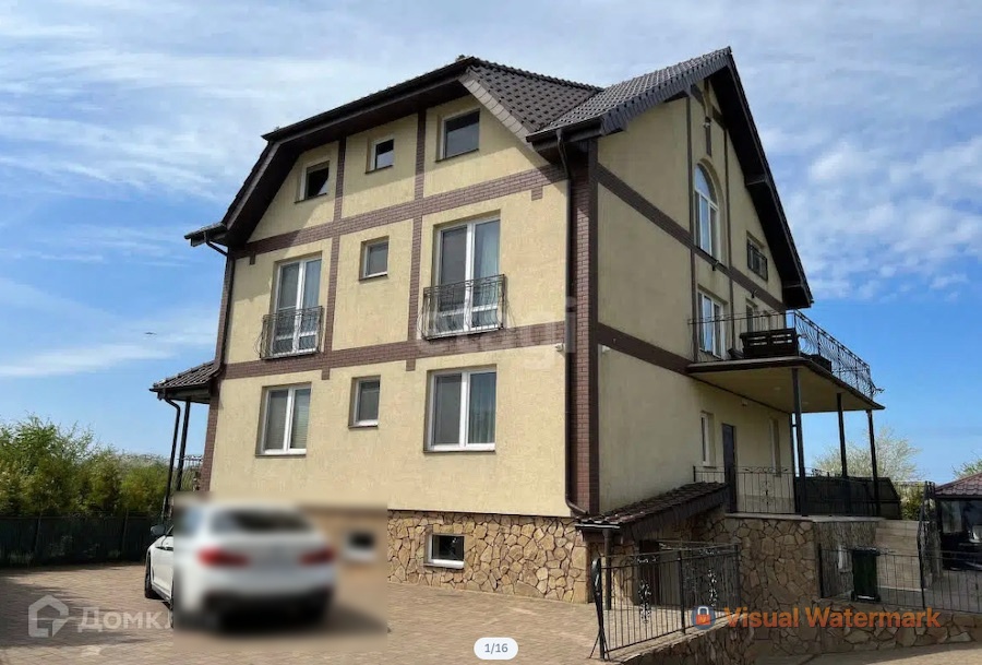Жилой дом в три этажа площадью 423 кв. метра выставлен на продажу на сайте «Домклик». Судя по фотографиям и описанию дом входит в состав усадьбы, возглавляющей топ недвижимости Рыбачьего.