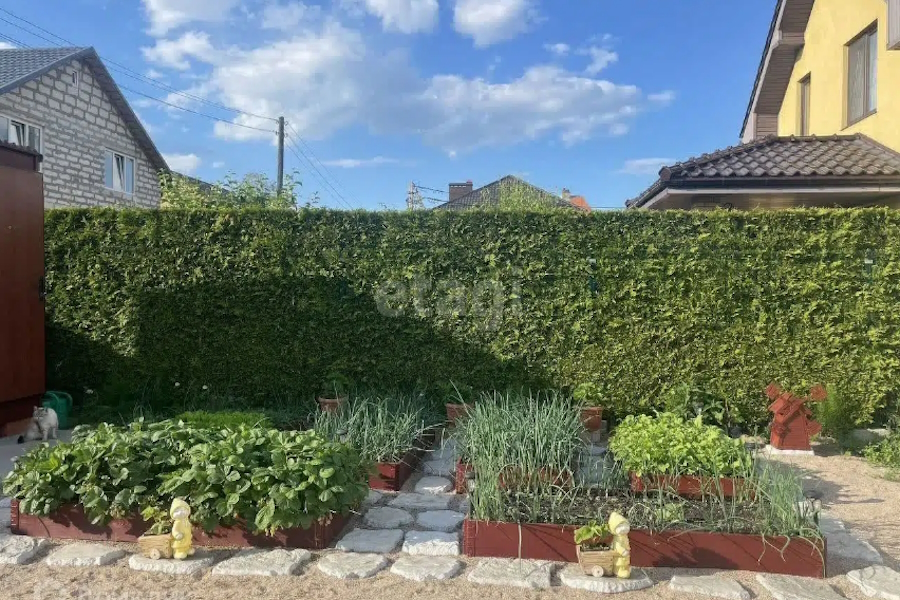 На территории дома залит фундамент «под беседку или баню, есть хозпостройка, грядки с зеленью, высажен сад: персики, абрикосы, яблони, смородина, самшиты». Имущество скрывает от посторонних взглядов «статный забор из векового немецкого кирпича и двустороннего прочного профлиста с откатными воротами, во дворе выложено 130 м² клинкерной тротуарной плитки».