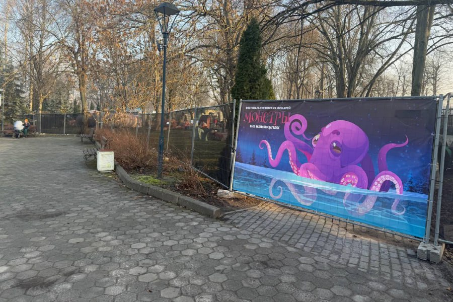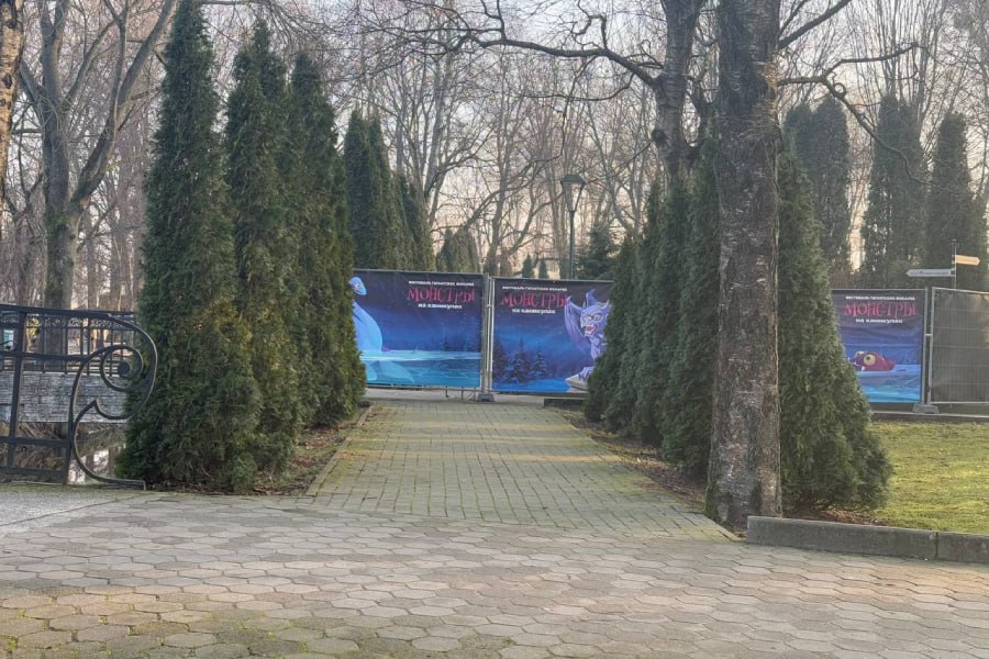Корреспондент «Нового Калининграда» по просьбе представителей Ассоциации воинов-интернационалистов региона (АВИКО) побывал в парке «Юность» в среду утром. Временные аттракционы с тематикой американского мультфильма «Монстры на каникулах» находились совсем рядом с мемориалом в память об участниках войн в Афганистане, Чечне, Сирии и теперь уже СВО, а также памятником бойцам спецподразделений. Слоган аттракциона — «Даже монстры выбирают Калининград для отдыха». Между туями, высаженными в память о погибших воинах-интернационалистах, были размещены скелетоны, а за памятным камнем виднелись чёрно-синие баннеры с картинками из мультфильма.